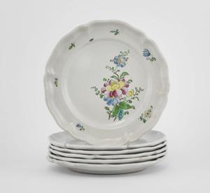 4313. Suite de six assiettes à décor floral, XVIIIe s