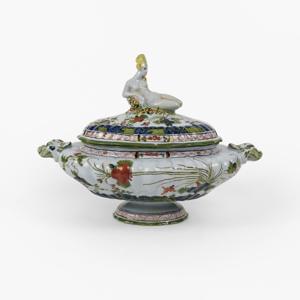 4316. Soupière surmontée d'une femme nue, Faenza, Italie, début XXe s