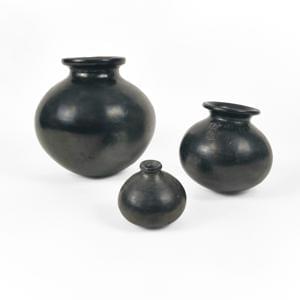 Suite de trois vases, céramique noire, dont un signé, H 6, 10 et...