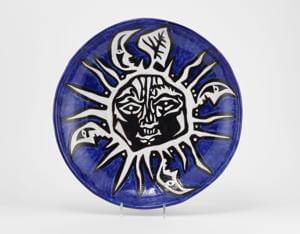 Grand plat, Saint Vincent, soleil sur fond bleu, numéroté 3/50,...