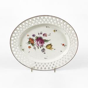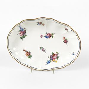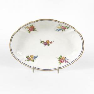 4343. Plat ovale à motif de fleurs, porte une marque de Sèvres, lettre...