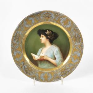4365. Assiette à l'effigie d'une femme avec livre et couronne de lauri...