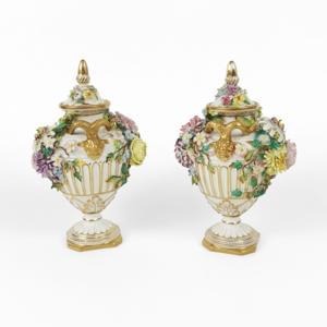 4372. Paire de vases à décor de fleurs et têtes de bélier, Saxe