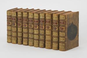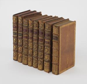 11 volumes in 4°, basane fauve jaspée, dos à nerfs ornés, tranch...