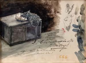 Le rat, aquarelle sur papier, signée et datée 89, 22x29 cm. Etud...