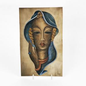 Visage féminin, aquarelle sur papier, signée et datée 75, 65x48,...