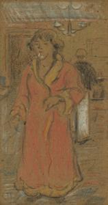 Portrait de femme, aquarelle et gouache sur papier, monogramme i...