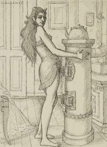 Nu masculin symboliste, mine de plomb, gouache et aquarelle sur...