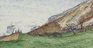 Vallée de Graüdivaudan, crayon sur papier gris, signé, 16,5x25 c...
