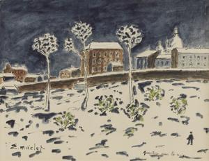 Jardins sous la neige, gouache sur papier, titrée et signée, 25x...
