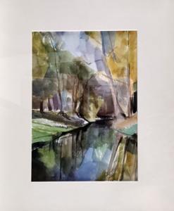 Bord de rivière, aquarelle sur papier, signée et datée 57, 33x24...