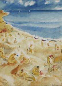 Femme à la plage, aquarelle sur papier, signée, 33x24 cm