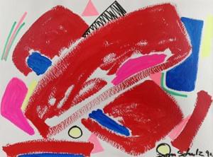 Composition rouge, gouache sur papier, signée et datée 90, 70x10...