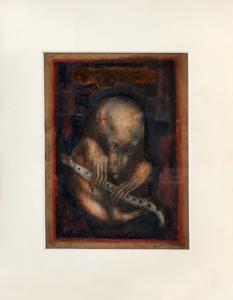 Petit joueur de flûte, aquarelle sur papier, 25x19 cm