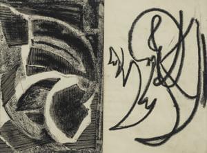Abstractions en noir et blanc, dyptique, pastel gras sur papier,...