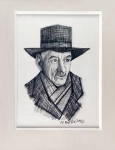 Homme au chapeau, fusain sur papier, signé et daté 1964, 46x33 c...