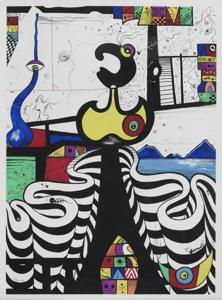 Composition surréaliste, aquarelle sur papier, signée, 77x55 cm