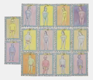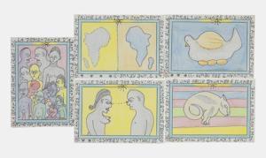 Composition de nombreux dessins, datée 01.1975, 50x39 cm