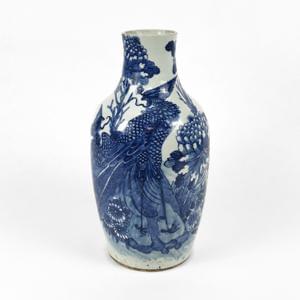 Porcelaine bleu blanc à décor de phénix, H 40 cm