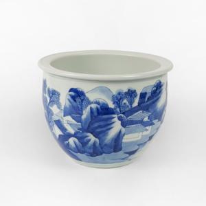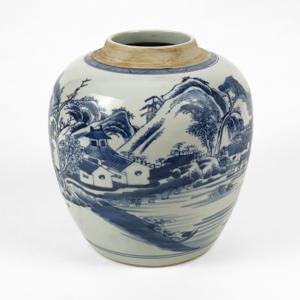 Porcelaine bleu blanc à décor d'un paysage animé, H 22 cm