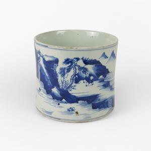 Porcelaine bleu blanc à décor d'un paysage animé, H 17 cm