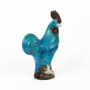 Porcelaine émaillée bleu à décor d'un échassier et de motifs flo...