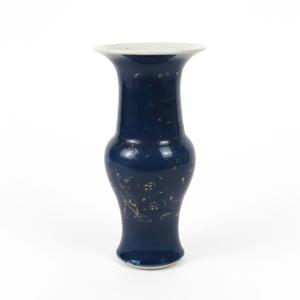 Porcelaine émaillée bleu poudré à motif doré, H 24 cm