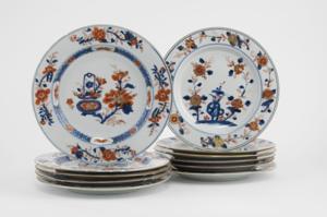 4897. Onze assiettes, Imari, Chine, Compagnie des Indes, XVIIIe s