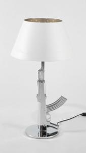 Lampe Gun, pied en aluminium teinté et doré figurant un fusil Ka...