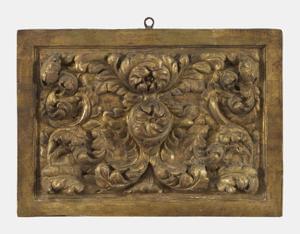 Bois sculpté en bas-relief et doré, 38x54 cm