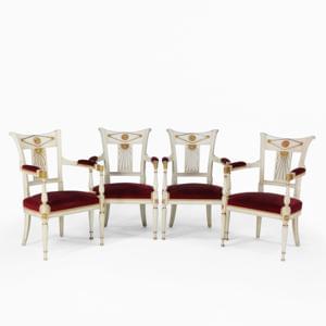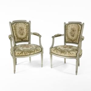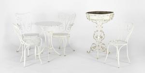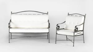 Métal peint blanc, comprenant: paire de fauteuils, paire de chai...