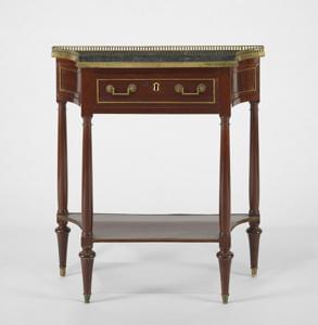 Acajou, laiton, marbre à galerie, 85x76x33,5 cm