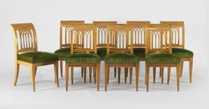 Suite de six chaises modèle Fledermaus, bois au naturel et cuir