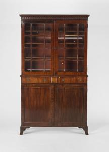 Acajou et cuir rouge doré aux petits fers, 120x40x40 cm