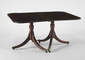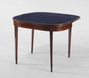Acajou et filets de laiton, pieds lyre, 78x80x34 cm