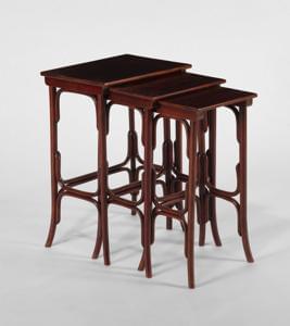 Trois plateaux, bois et laiton, 68x90x47 cm