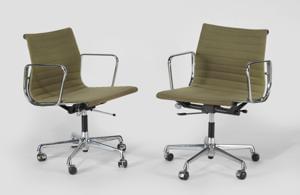 5384. Paire de fauteuils de bureau pivotant, réglable sur roulettes pa...