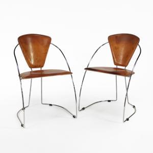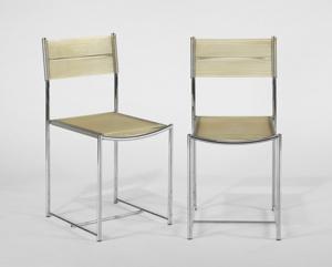 Deux chaises spaghetti, métal chromé et lanières en plastique
