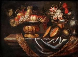 Nature morte aux fruits et fleurs, 24,5x33 cm