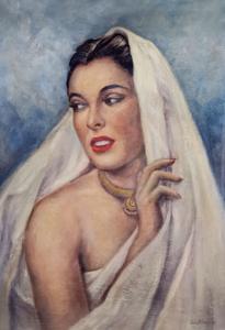 Portrait de jeune femme orientale, huile sur pavatex, signée Kru...