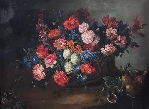 Nature morte aux fleurs et figues, huile sur toile, 30x41 cm
