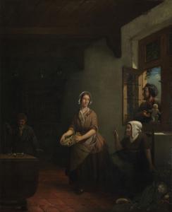 Scène d'intérieur, huile sur bois, 31x40 cm