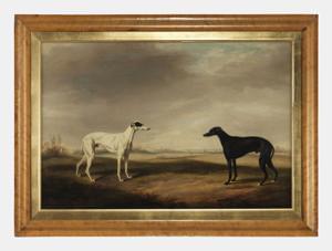 Portrait de deux lévriers, huile sur toile, 51x76 cm