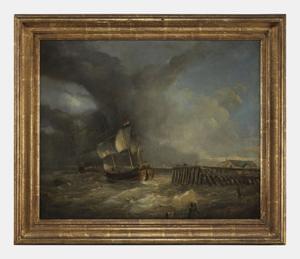 L'estacade de Nieuport, huile sur toile, signée Lambert, 48x59 c...