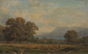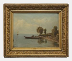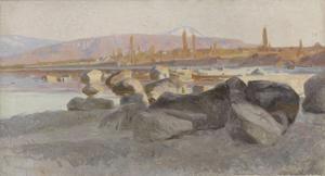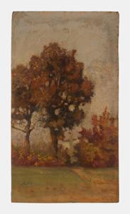 Paysage du Léman, huile sur carton, une esquisse au dos, 22x27,5...