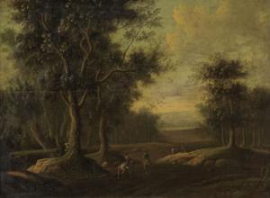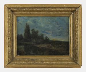 Paysage animé, huile sur toile marouflée, 56x81 cm