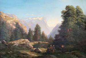 Paysage de montagne, huile sur toile, signée, 32x47 cm