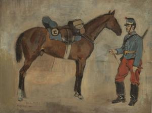 Garde et son cheval, huile sur toile marouflée sur pavatex, sign...