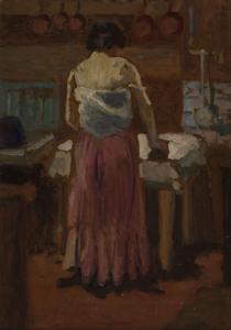Portrait d'une domestique, huile sur panneau, 31x15 cm