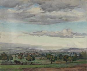 Vue de Genève depuis le sud, huile sur toile, signée et datée 19...
